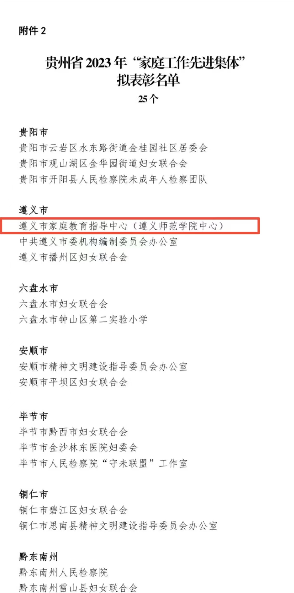 贵州省2023年度家庭工作先进集体、先进个人公布