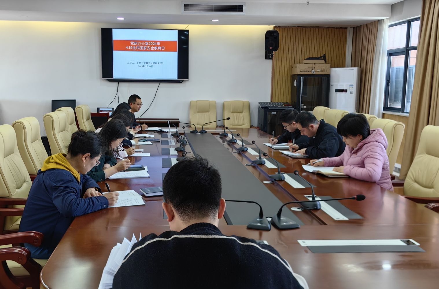 在第九个“4·15”全民国家安全教育日来临之际,根据学校统一部署,3月28日下午,党政办公室在行政楼516会议室开展国家安全和保密宣传教育活动。全体教职工参加活动,活动由党政办副主任丁亮同志主持。
