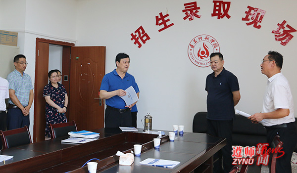 学院领导一行实地查看了招生录取现场、档案室,听取了招生与毕业生就业指导处副处长李明刚关于招生宣传、招生录取准备等情况的介绍。