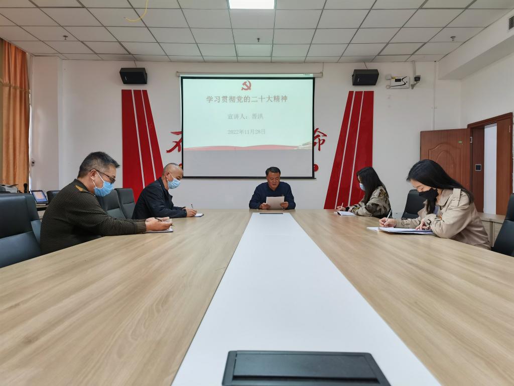 2022年11月28日上午,学生资助管理中心副主任晋洪同志在学生中心419会议室宣讲党的二十大精神,支部全体党员到场聆听报告,非党员杨静参加。