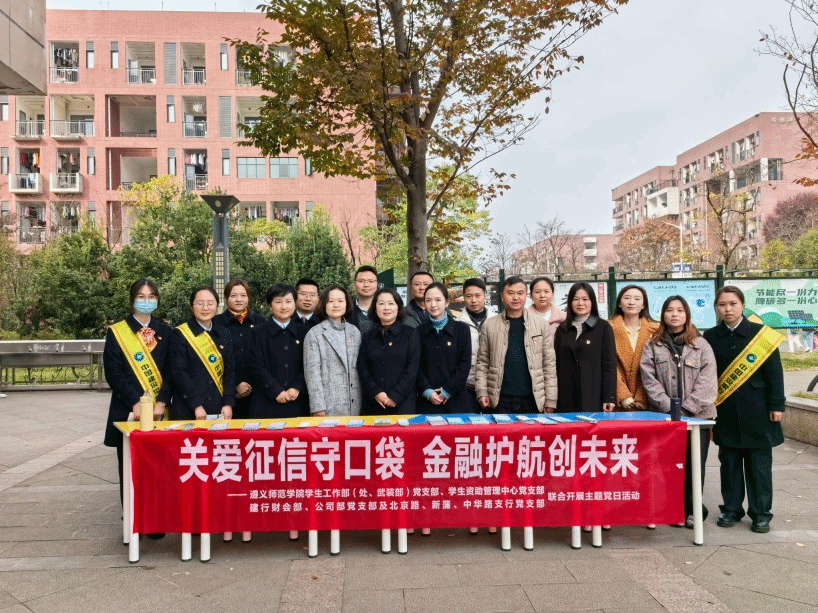 2023年12月4日,微信买球官方网站学生资助管理中心党支部、学生工作部(处)党支部、中国建设银行遵义分公司财会部、公司部党支部联合开展“关爱征信守口袋 金融护航创未来”主题党日活动。为全校学子宣传征信、反诈、反洗钱等金融知识,同时向他们提供免费金融咨询和志愿服务,全面提升青少年金融素养、维权意识和风险防范能力,充分发挥党员先锋带头作用,立足岗位、多做贡献,以党建引领高质量发展。
